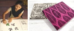 For non-traditional women artisans, MSS developed a low-cost innovative printing technique where a fresh leaf is used as a printing block. From a single leaf, 200 motifs are printed.